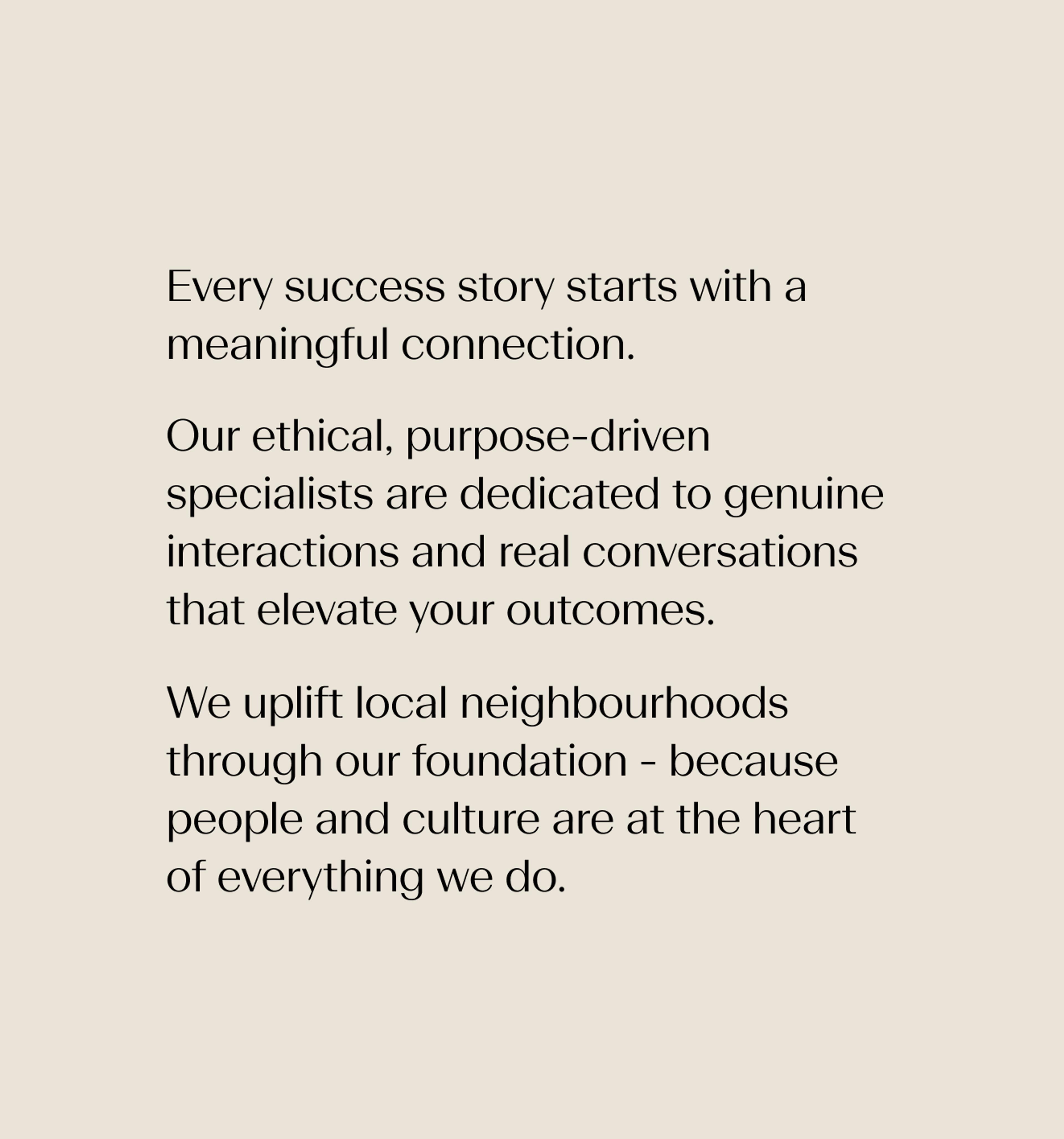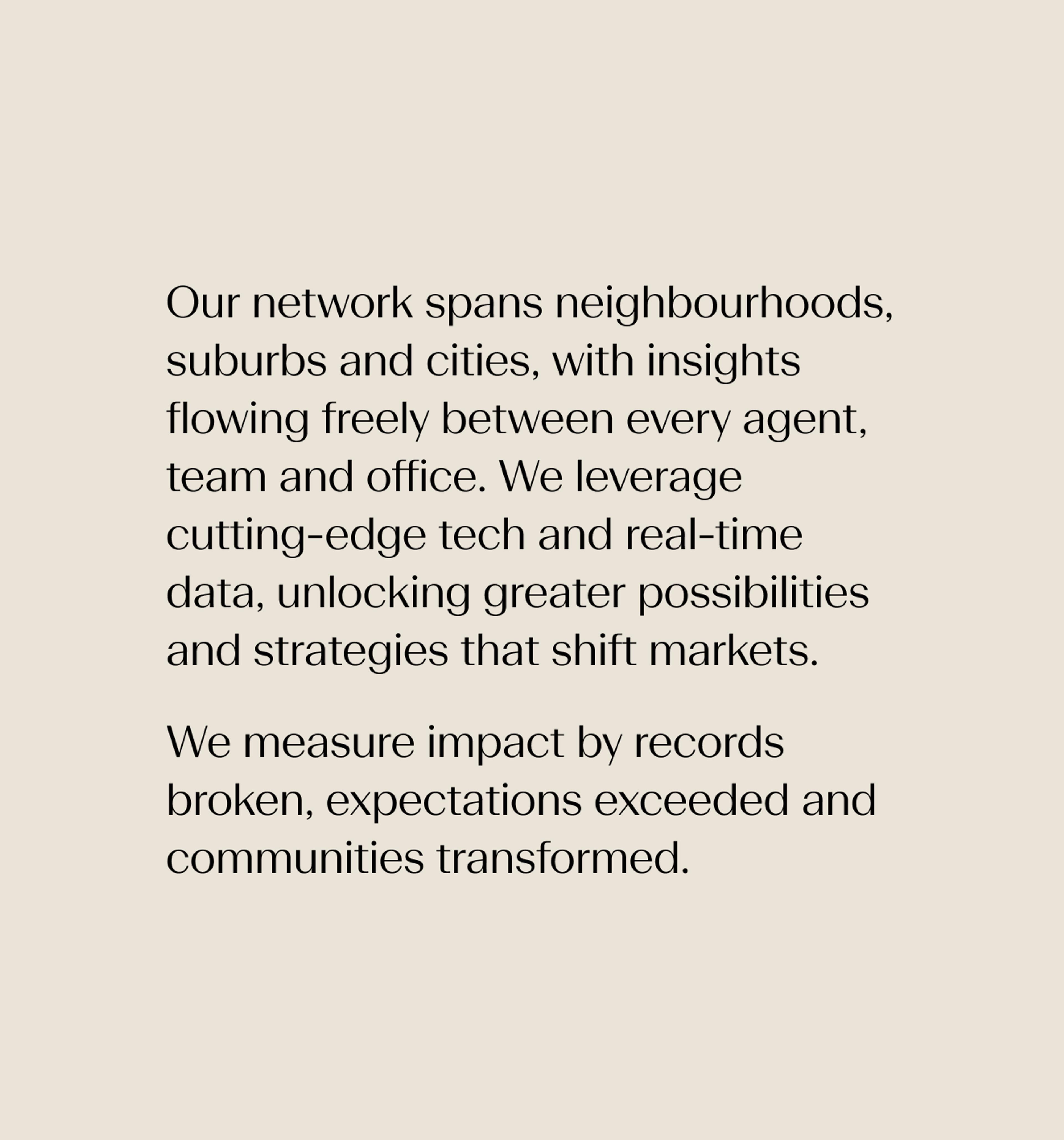 The line captures both the strength of the network and the human connection at its core. It positions the brand as a gateway to something more, not just property outcomes but access to a trusted and aspirational community.